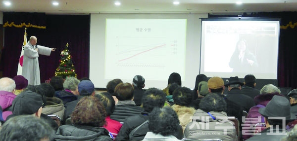 현파 수상 스님, 웰다잉 강연12월 15일 제주농아인들에게 제주불교신문승인 2018.12.19 15:31 제주 웰다잉연구소장 현파 스님이 지난 12월15일 제주농아인 300여명을 대상으로 품위있는 죽음, 웰다잉을 주제로 강연했다. 이번 강연에서 스님은 ‘아름다운 마침표, 어떻게 살 것인가’를 주제로 의미 있고, 아름다운 삶의 마무...